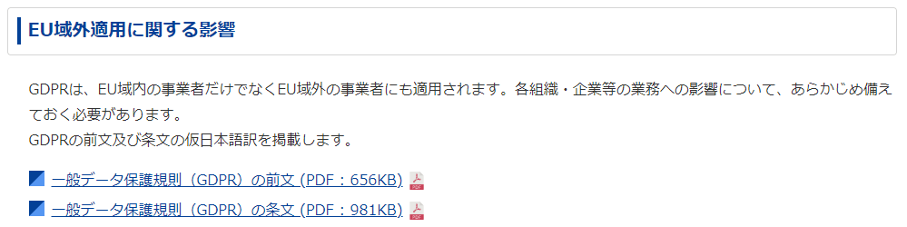 なお、個人情報保護委員会は、GDPRをRecital(前文)部分と条文部分でファイルを分けて訳しています。