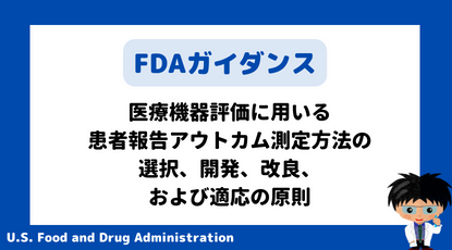 FDAが「Principles for Selecting, Developing, Modifying, and Adapting Patient-Reported Outcome Instruments for Use in Medical Device Evaluation(医療機器評価に用いる患者報告アウトカム測定方法の選択、開発、改良、および適応の原則)」というガイダンスを公表しました。