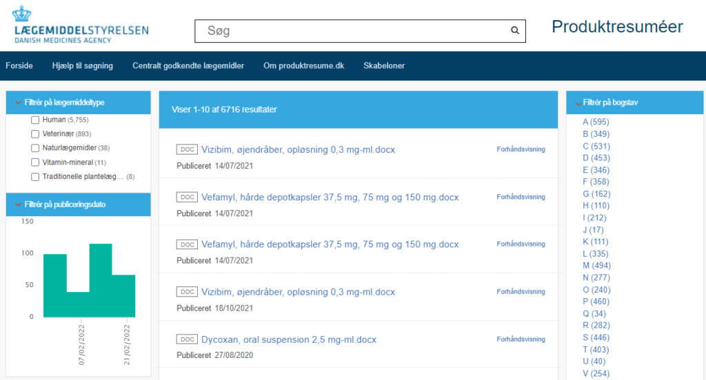 デンマークで承認されている医薬品の製品概要や患者向けのリーフレットを調べる方法について概説します。