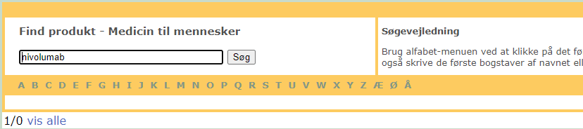 また、デンマークで承認されている医薬品の情報を検索する場合、製品概要と患者向け説明文書はそれぞれ別のサイトから検索することになるのですが、患者向け説明文書を検索できるサイトでは中央審査方式で承認された医薬品も検索できる一方で、製品概要を検索できるサイトでは中央審査方式で承認された医薬品は掲載されていません。