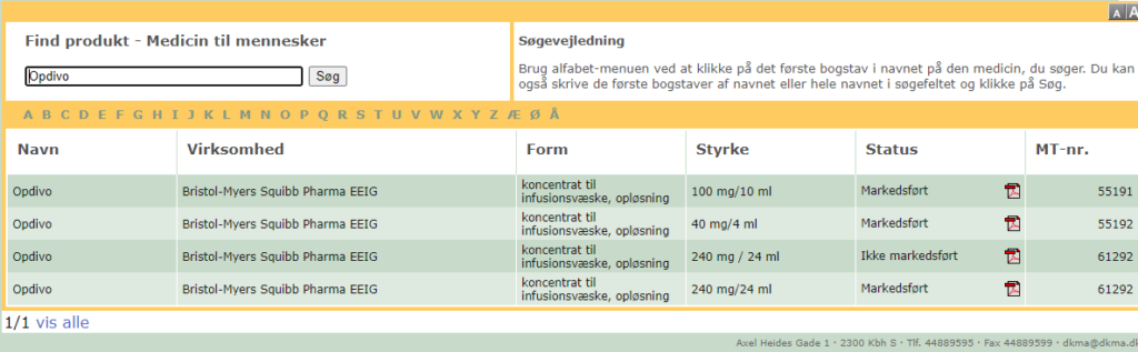 デンマークで承認されている医薬品の多くがEMAの中央審査方式で審査され承認されているため、EMAのウェブサイトで情報を見つけることができる医薬品の場合は、EMAのウェブサイトから調べた方が英語で情報が得られるため、多くの日本人にとっては有益なのではないかと思います。