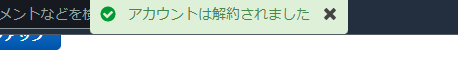 すると、画面上部に「アカウントは解約されました」とのメッセージが表示されます。