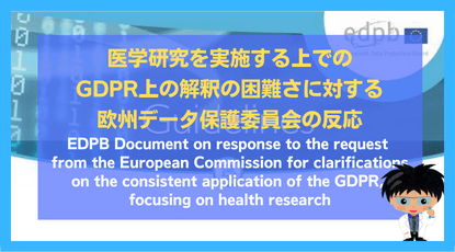 そんな中、2021年2月にEDPBが「EDPB Document on response to the request from the European Commission for clarifications on the consistent application of the GDPR, focusing on health research」という文章を公表しました。